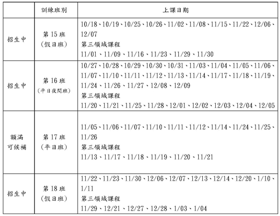 3.在課程報名人數不足的情形下,本協會保留異動及不開班之權利,如不予開班