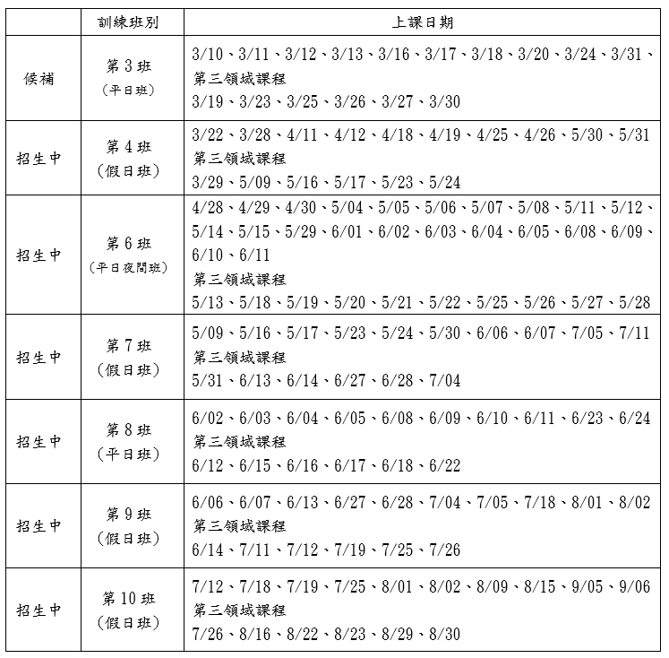 3.在課程報名人數不足的情形下,本協會保留異動及不開班之權利,如不予開班
